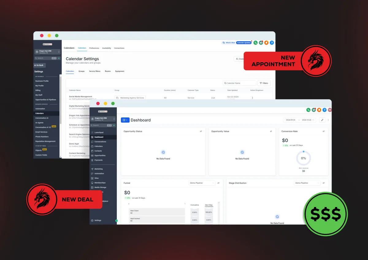 "Dragon Hub" brings customers in. Its design ensures that you’re consistently reaching out—through texts, emails, phone calls, and calendar reminders. This effective approach keeps you top of mind for your customers, demonstrating that you’re always there for them. The bottom line? It truly delivers results.